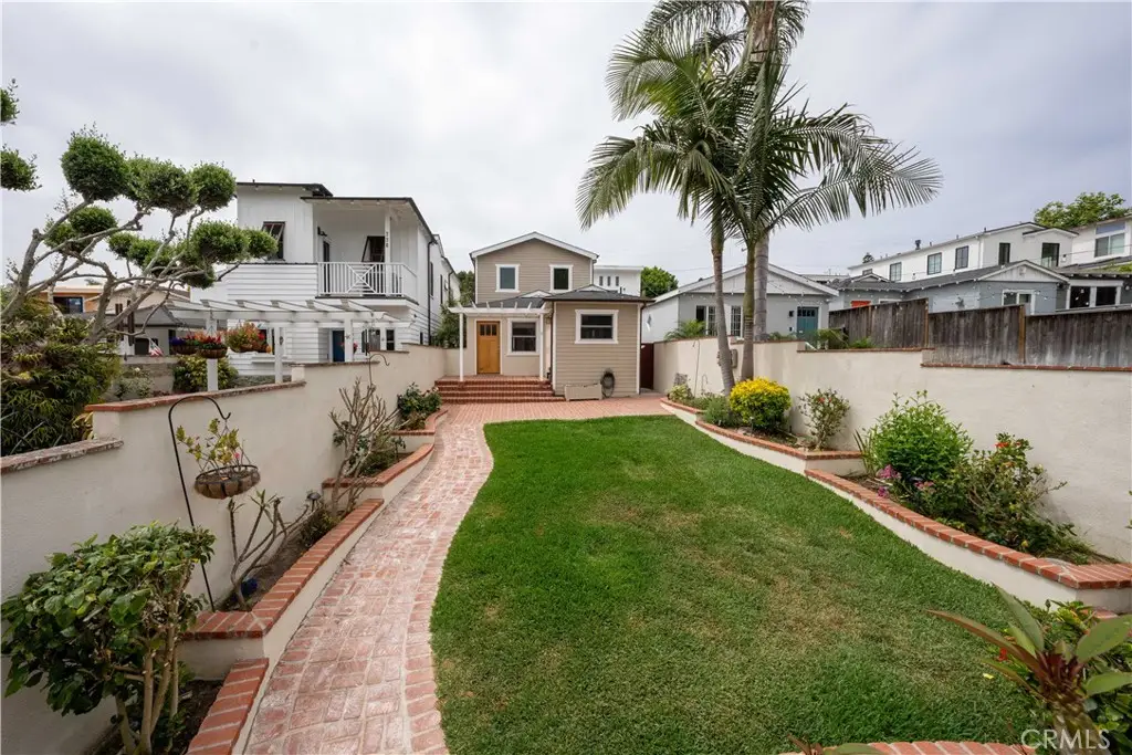Wonderful Tree Section rental with 3 bedrooms, 2 bathrooms and a built-in office loft area for two. This sweet home has a huge landscaped front lawn gated from the street and a back private courtyard with a gas grill and a fire-pit area on hardscape. Hard wood floors throughout and freshly white painted walls create a clean and comfortable vibe for you. The second floor has a beautiful primary bedroom, bathroom, balcony and closets and is where the open built-in office area is located. Best of all is the easy 7-block walk to the ocean and 6 blocks to the lively North MB restaurants, coffee shops, spas etc.